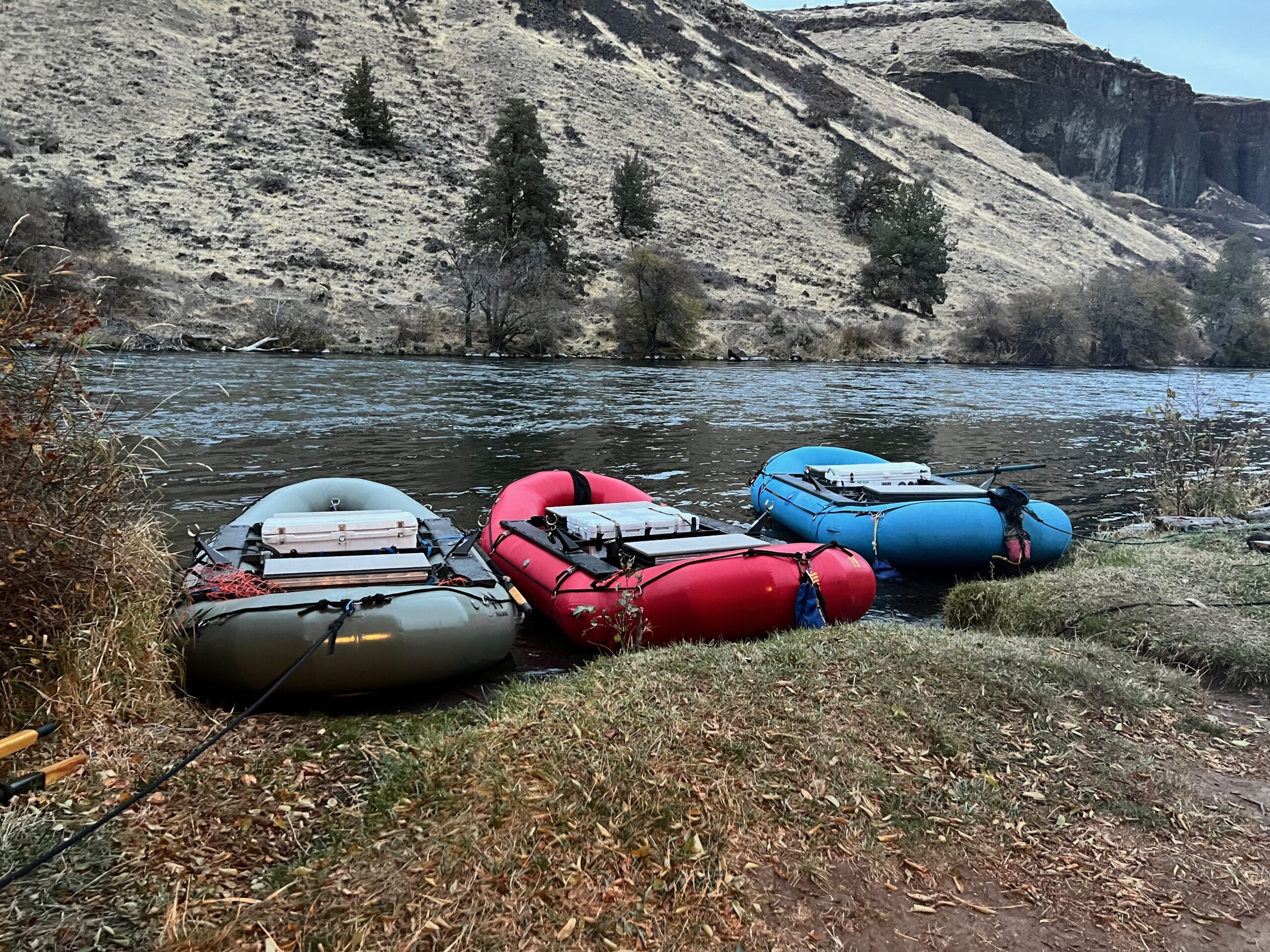 Annual winter trip down the Deschutes with a lineup of different colored Maravias. The blue one is a 1995, red is 2003, and olive is 2022. Safe to say they withhold the test of time!