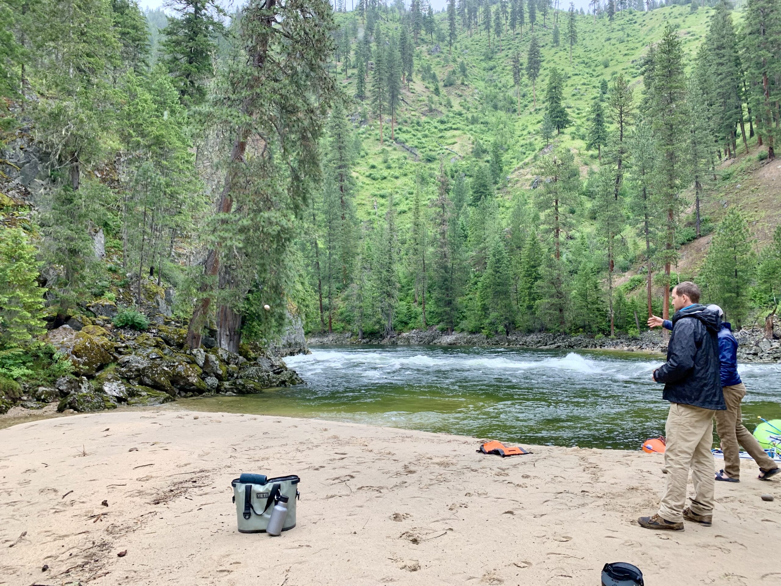 This camps has amazing round rocks, perfect for exploring while playing bocce. We had drinks in the cooler bag, water clipped to the side and a speaker on top. We spent an entire rainy lay over day like this.