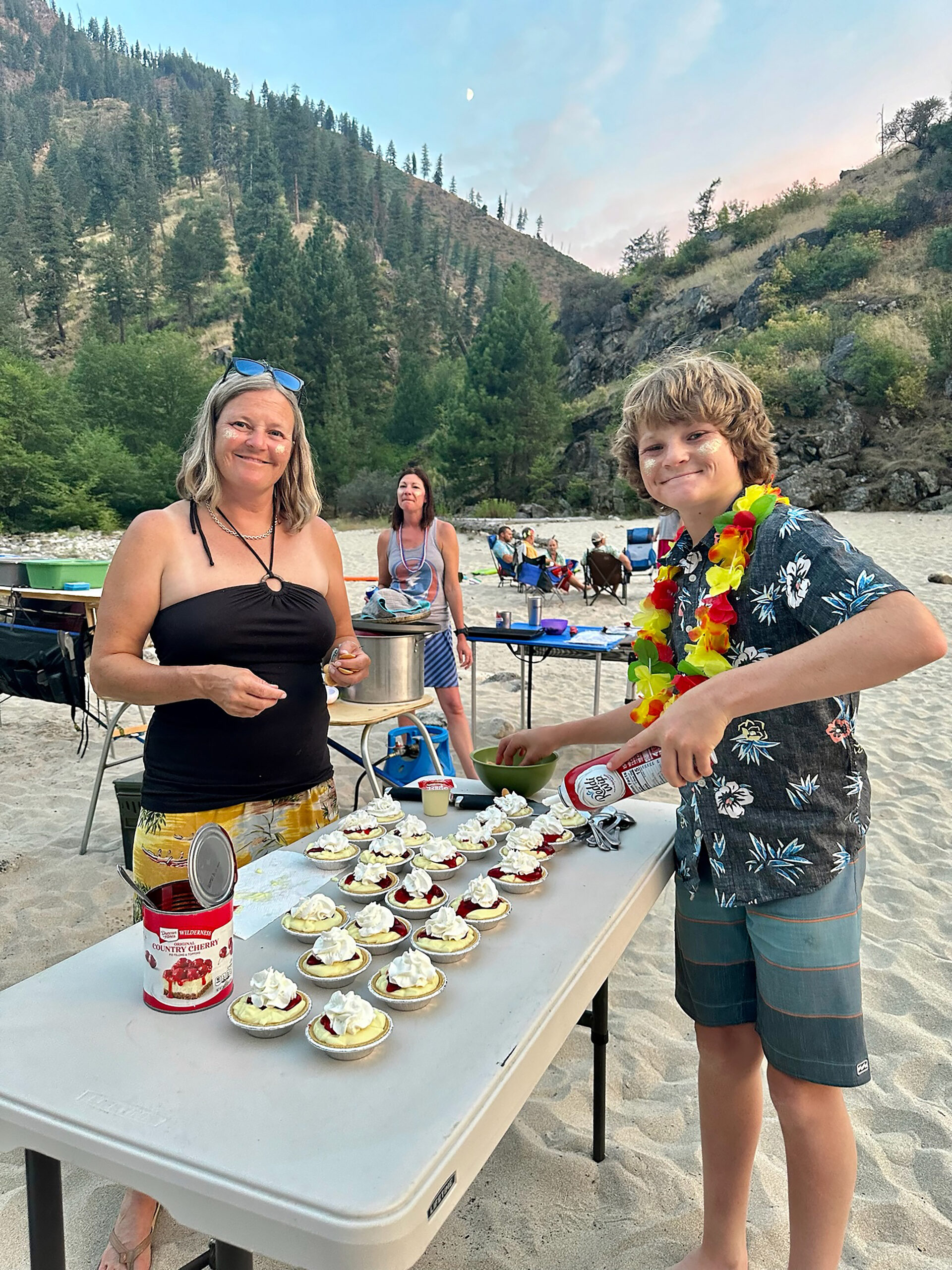 Feeding the masses is more fun riverside. When there’s leftover whipped cream, it’s fun to watch the kids line up for a squirt in their mouths—smiles all around.