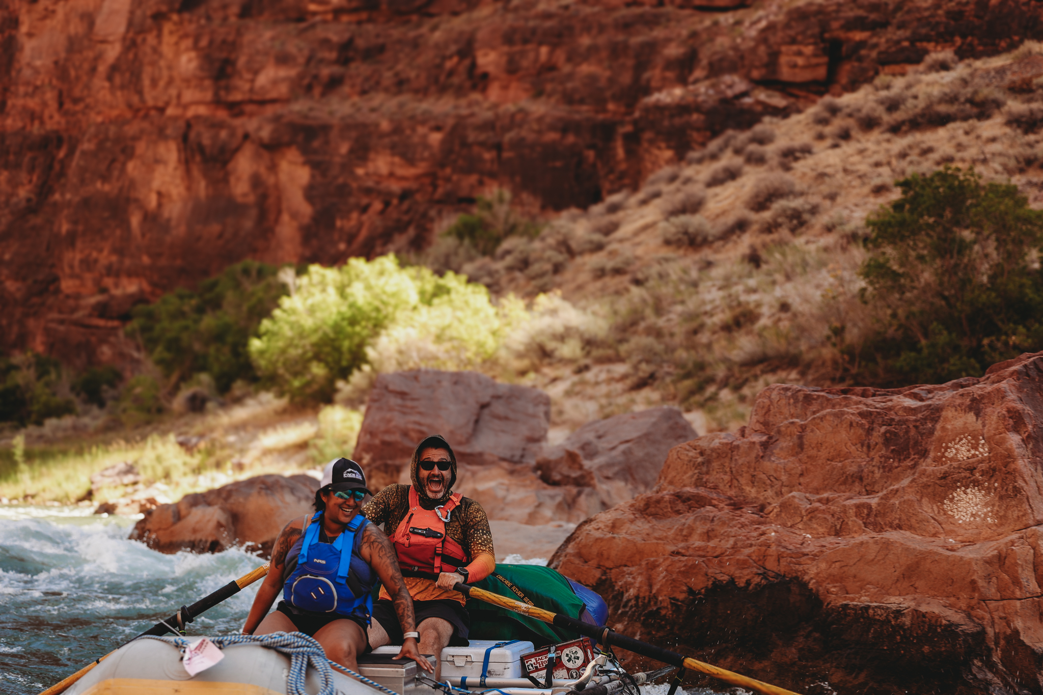 "Navigating low water floats with nothing but smiles on our faces"