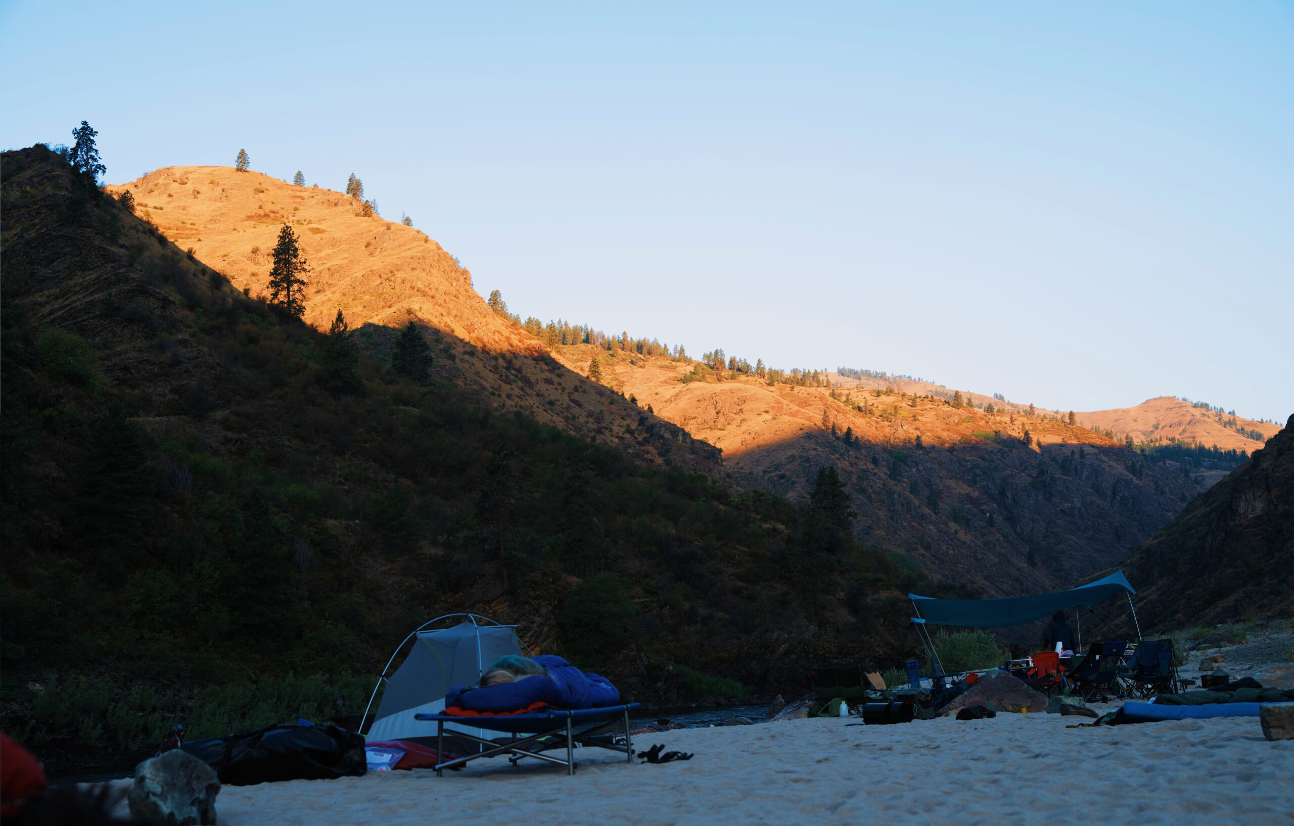 I woke up before anyone else. The ridge had caught the first light, camp still and quiet. That kind of peace doesn’t last long, but that sunrise felt like it was just for me.