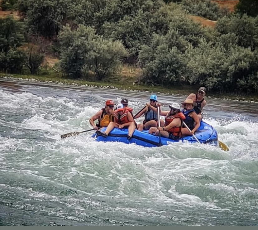 Paddling your friends down the river, see if you can ride the bull!